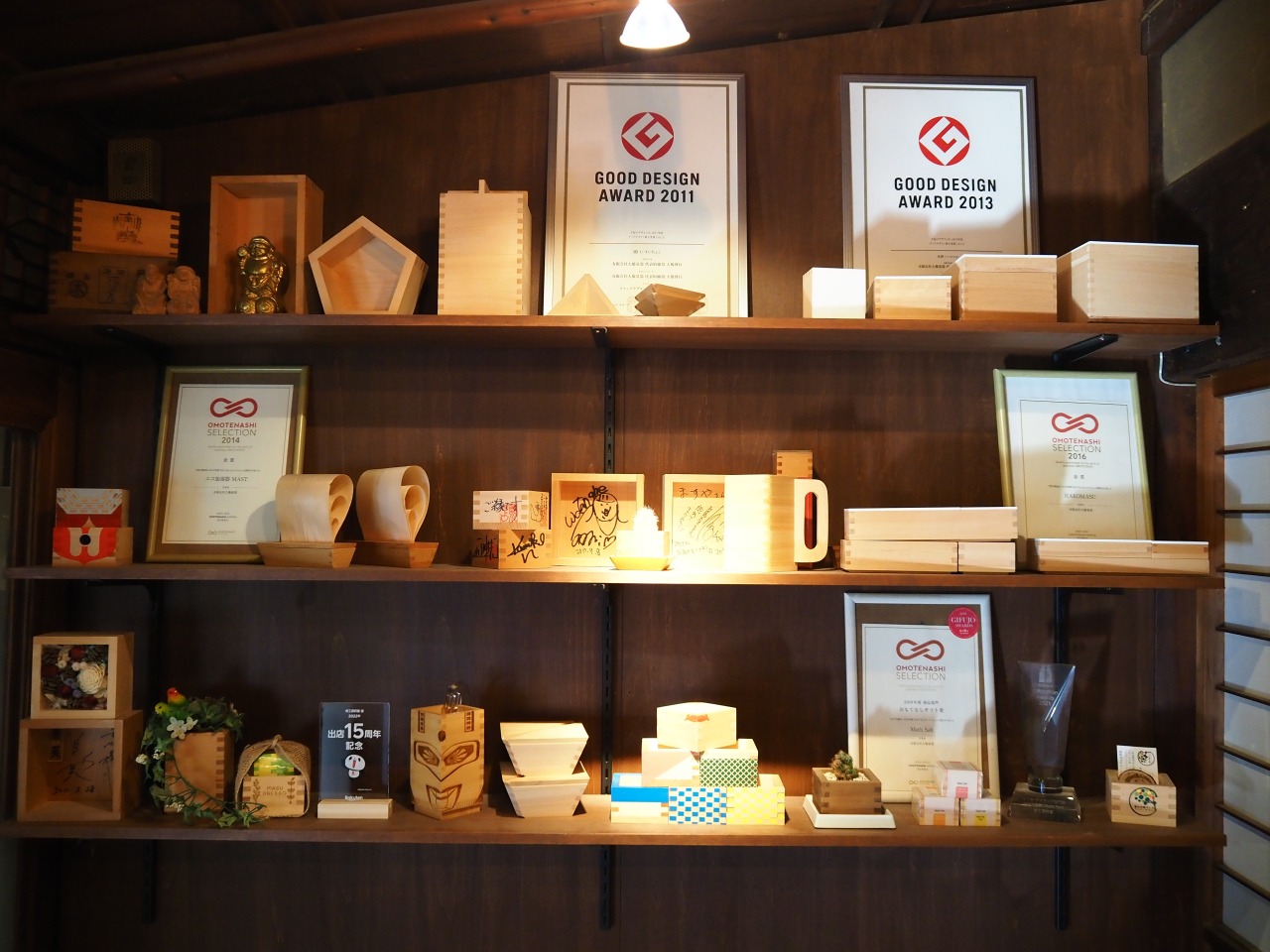 また、店内では、大垣ブランド製品である、「灯します」「合格(五角)します!」「八角形のます」など、ユニークな枡が購入できます。