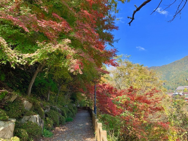 - 遊歩道周辺には駐車場がありませんので、お車でお越しの際は、飛騨市神岡振興事務所駐車場をご利用ください。駐車場から遊歩道入口まで徒歩約5分