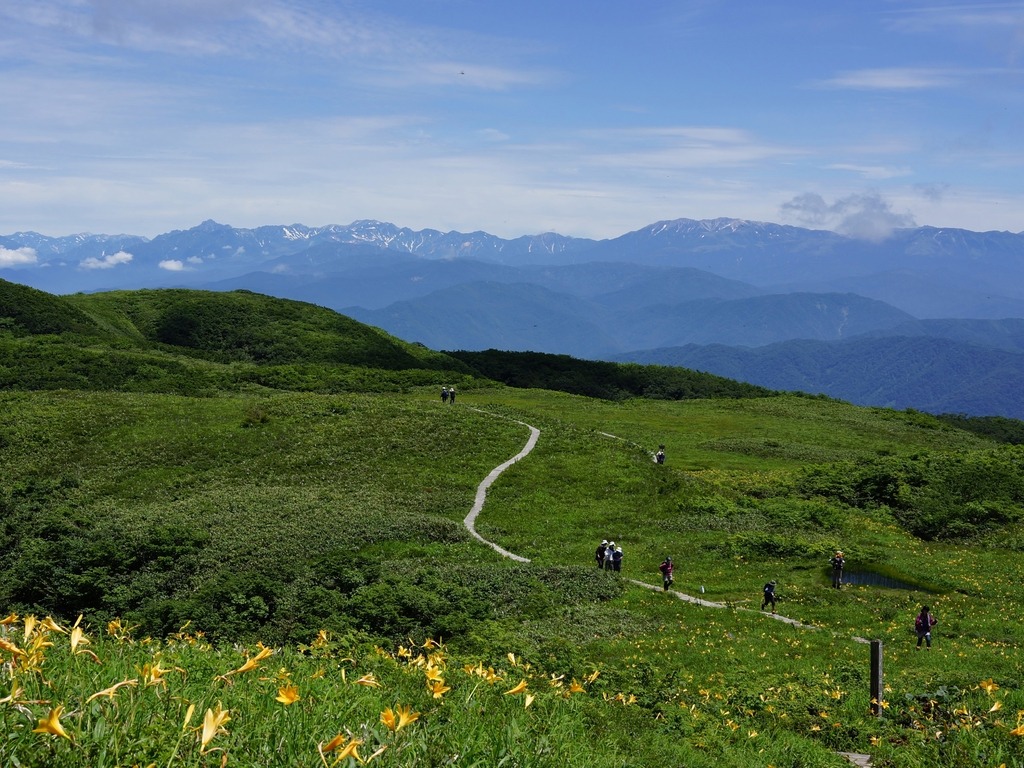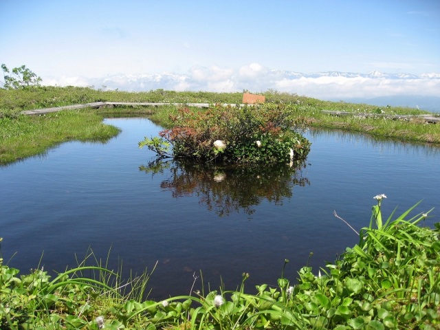登山口から、少し登ると大きなブナの林が現れます。小白木峰の山頂に近づくにつれて、ブナが低く、小さくなっていきます。自然、気候に左右されながら、たくましく生きるブナの様子を感じる事ができます。白木峰の山頂を越え、東に進むと池塘群が現れます。お薦めは「浮島のある池塘」です。白木峰の山頂を越え、20分程進んだ先にあります。水面に移る雲や周囲の草花を移す様子は、格別の趣があります。