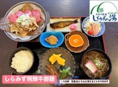道の駅「飛騨白山」に隣接する100%天然温泉、かけ流しが自慢の日帰り温泉「しらみずの湯」。