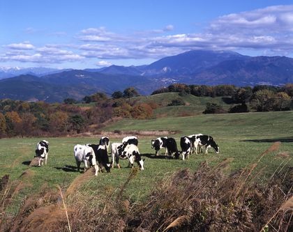 360度の大自然、岩村町の西部高原地域から恵那市にまたがる300ヘクタールの大牧場「東濃牧場」。約600頭の乳牛の育成牛が飼育されています。