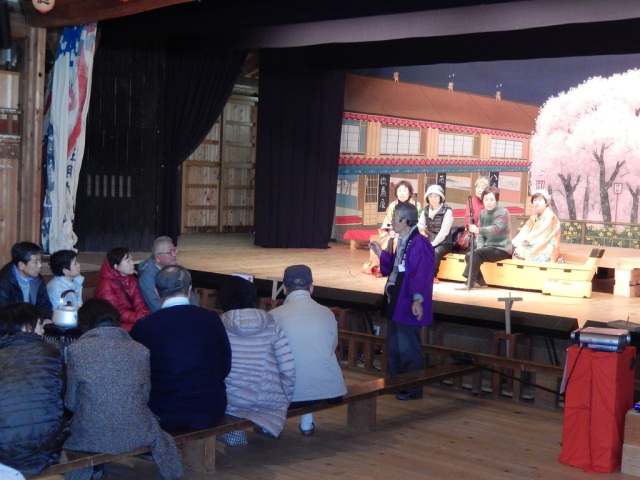 入母屋、妻入りの形式で間口17.1m、奥行き26.9mと立派なもので、村芝居が盛んだったこの地方の娯楽の殿堂として賑わった当時を偲ぶことができます。