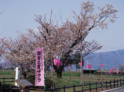 一本の樹に一重咲き、八重咲き、二段咲きの三通りの咲き方を枝によってする珍しい桜で、学術的にも貴重な桜です。
