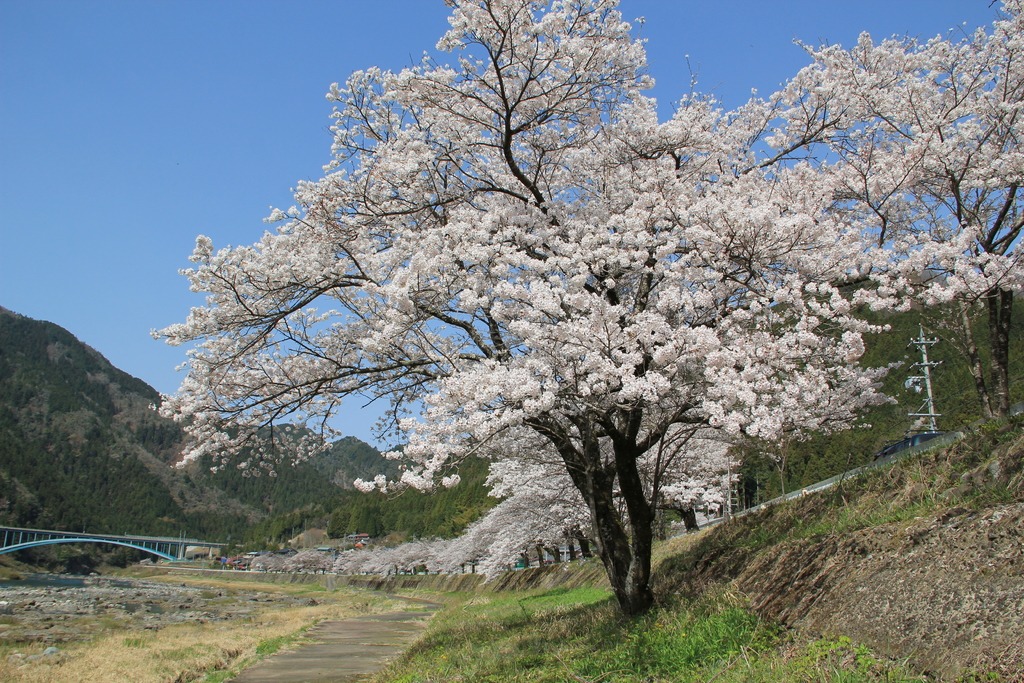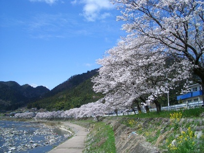 国道156号線沿いに約500mにわたって咲き並ぶ桜は、春の満開時になると、国道を通るドライバーの目を楽しませてくれます。
