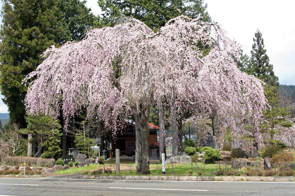 薬師堂の枝垂れ桜(やくしどうのしだれざくら) 【飛騨・美濃さくら33選】道に覆い被さるように咲く桜に目を奪われる 国道361号線沿いを朝日町の中心へすすむと、道のすぐ脇を風情ある表情を覗かせる若い枝垂れ桜が目に映ります。桜の元の薬師堂に安置されている円空作の仏像と共に、春の訪れを待っています。飛騨・美濃さくら33選に選ばれ、4月中旬~下旬が見ごろです。駐車場は国道361号を挟んで道向かいにあり、普通自動車が3台駐車できます(無料)。 エリア 飛騨 高山市 カテゴリー 自然に癒される 桜の名所 Loading... フォトツアーを見る 基本情報 住所 岐阜県高山市朝日町万石 電話番号 0577-55-3777 問い合わせ先 飛騨あさひ観光協会 アクセス JR高山本線「高山駅」より、国道41号から美女街道、国道361号を経由し25分 ウェブサイト https://www.hidatakayama.or.jp/watch/yakushidou/