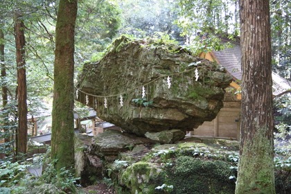 上部の岩は推定42トンの重さがあり、片手でグラグラと動かすことができると言われています。その昔、伊勢の天の岩戸のかけらが飛んできたと伝えられています。