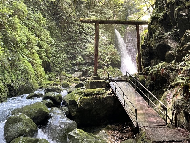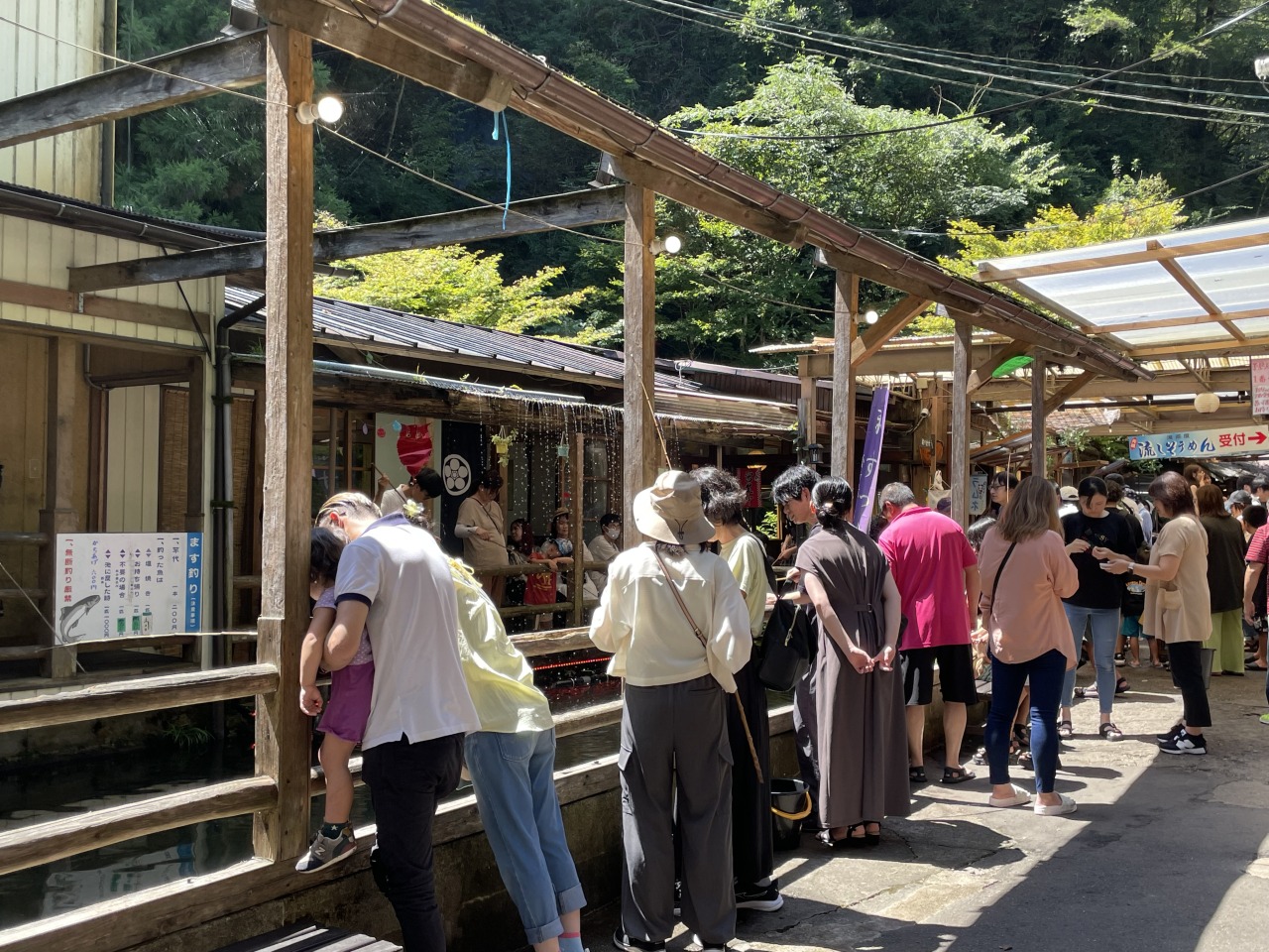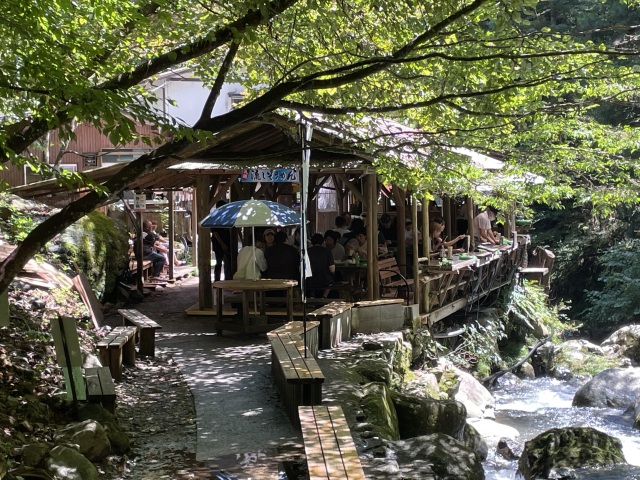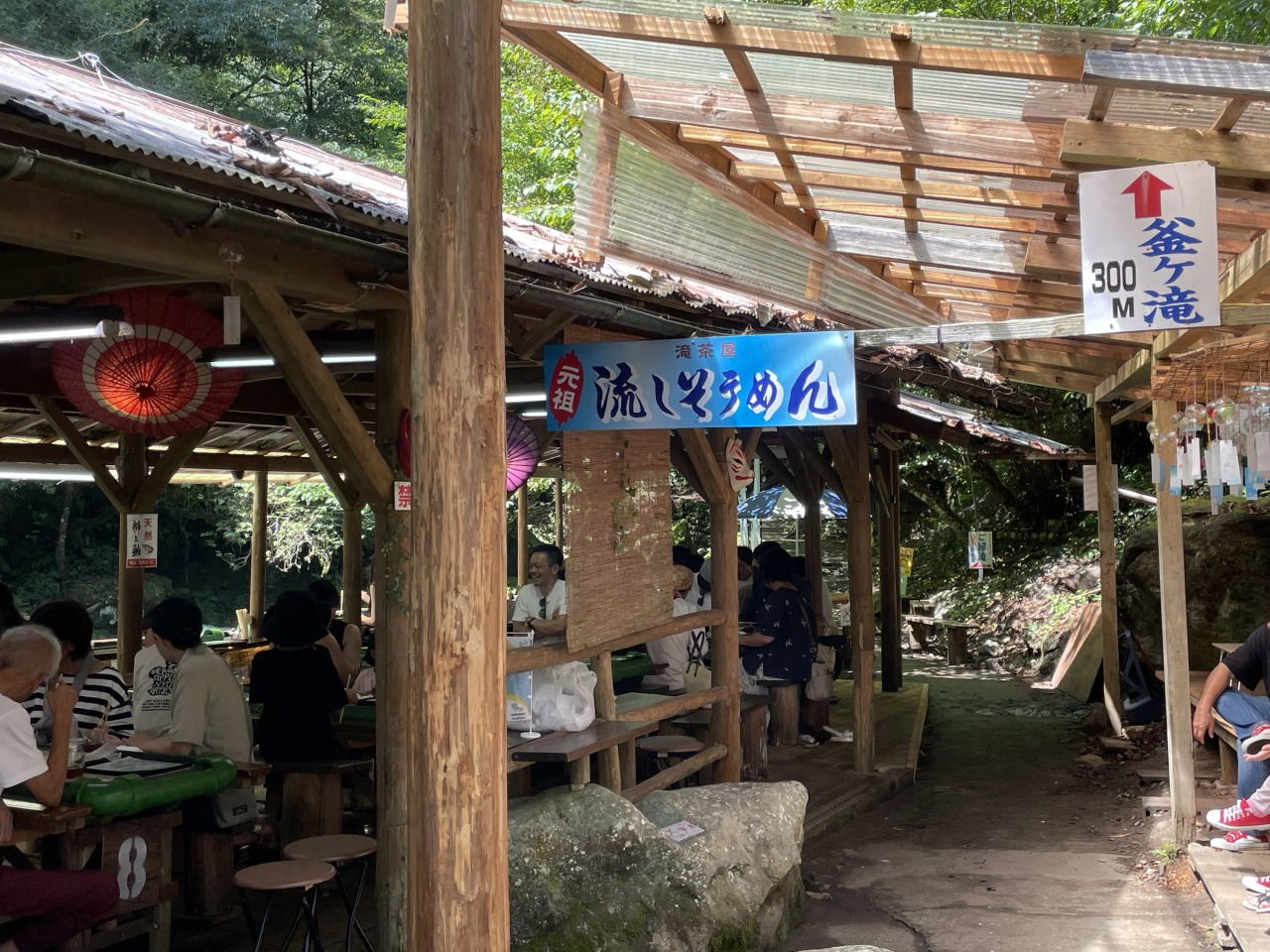 滝の近くにある滝茶屋では、流しそうめんが食べられます。