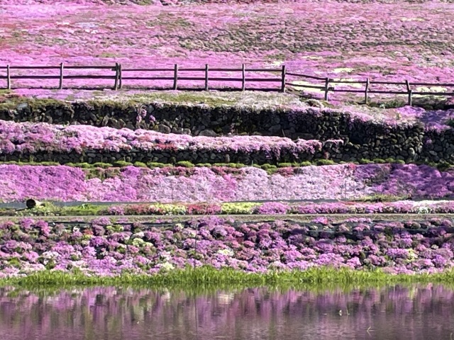 國田家の芝桜 (くにたけのしばさくら) まるで一面じゅうたんを敷き詰めたかのような美しさ 國田家の芝桜は、個人のお宅ながら、郡上市を代表するお花見スポットしてあまりにも有名です。里山の斜面一面に広がるピンクや白、薄紫色の花畑は、昭和36年頃から國田かなゑさんがコツコツと植えて育てた花畑を、娘夫婦が引き継ぎ20年もの間大切にしてきました。来園の方に喜んでいただけるよう、手すり付きの通路、田んぼの水鏡、展望台のムサシ(標高634m)など、ご主人がコツコツと作りました。 ※入場料無料 お志を頂ければ幸いです。 エリア 岐阜・中濃 郡上市 カテゴリー 自然に癒される 花の名所 Loading... フォトツアーを見る 基本情報 住所 〒501-4305 岐阜県郡上市明宝奥住 電話番号 0575-87-2844 問い合わせ先 明宝観光協会 アクセス せせらぎ街道を北上 ウェブサイト 明宝観光ナビ 口コミサイト グーグルマップの口コミはこちら 備考 見頃は4月中旬