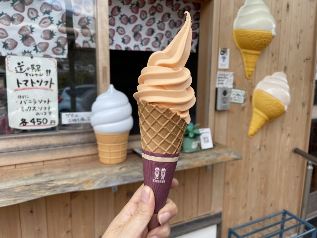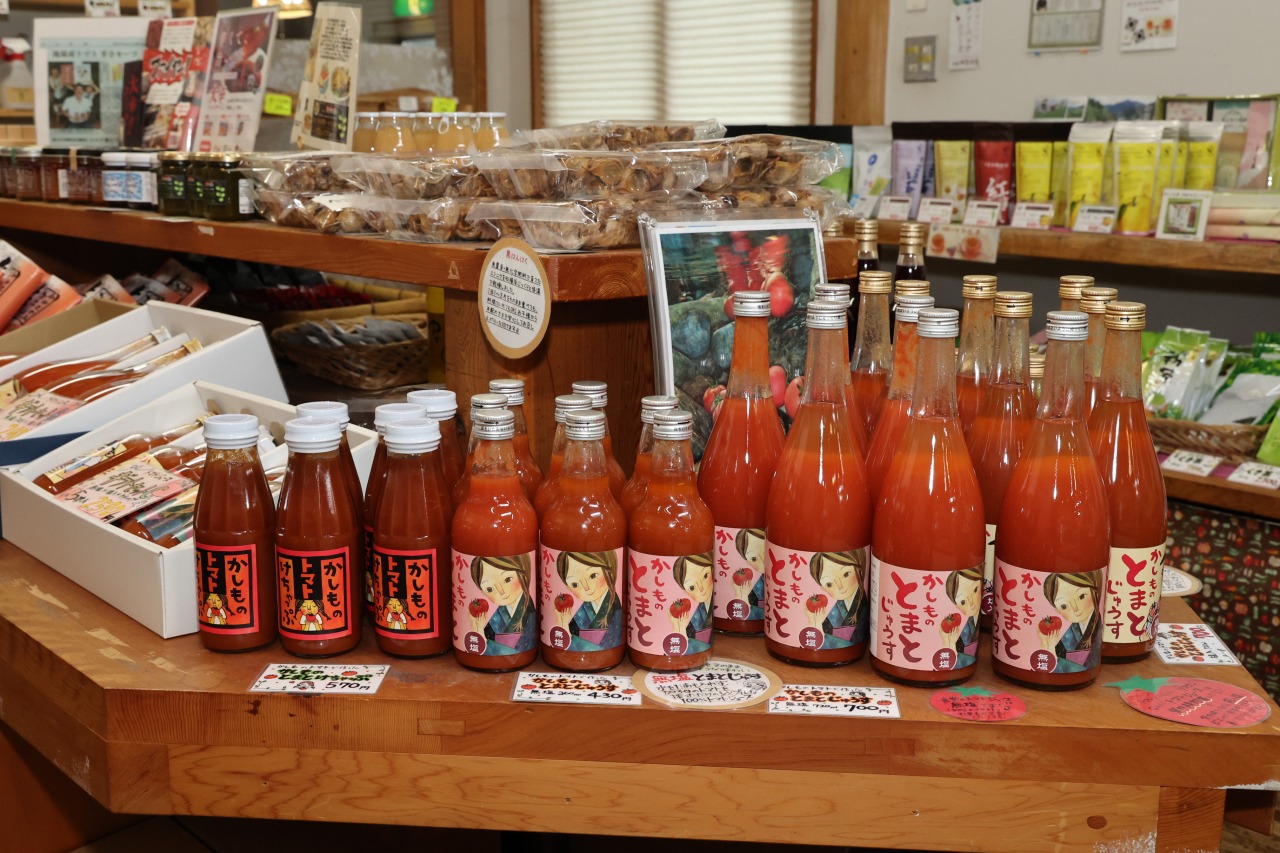 トマト嫌いの子どもでも喜んで飲むという「トマトジュース」や、ワラビの根っこからとった希少なわらび粉を使用した「加子母のわらび餅」などが人気です。また、 淡いピンク色がきれいな「トマトソフトクリーム」は、ここに来たら食べてほしい一品。夏秋トマトのさっぱりとした酸味がミルクと相性抜群です。