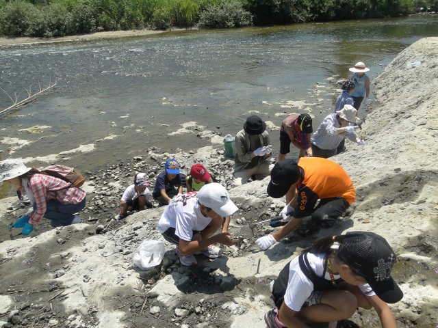 野外学習地では化石の観察や採集ができます。必ず瑞浪市化石博物館に許可を得てから、かなづち・たがね等の道具を持参の上、お越しください。