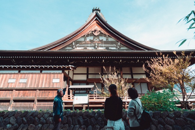 飛騨古川の観光スポットの瀬戸川に隣接し、白壁土蔵街と円光寺の風景は飛騨古川の象徴的な風景として親しまれています。円光寺の山門は、その昔この地を治めた金森氏が築城した増島城の城門を移築したものだと言われています。