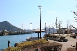 川辺町役場出発→(5分)→東光寺公園→山川橋(昭和12年竣工でレトロなコンクリート製)→(5分)→対岸へ→(20分)→川辺町B&G海洋センター→(15分)→やすらぎの家・かわべ夢広場→(10分)→岐阜県川辺漕艇場→(5分)→川辺町役場到着