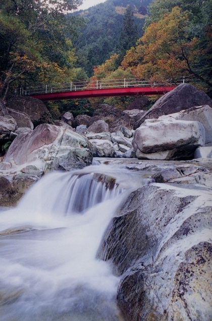 渓流沿いには遊歩道があり、紅葉の時期は特におすすめです。