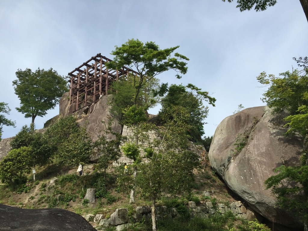 巨岩を抱え込んだ石垣と展望台からの大パノラマ