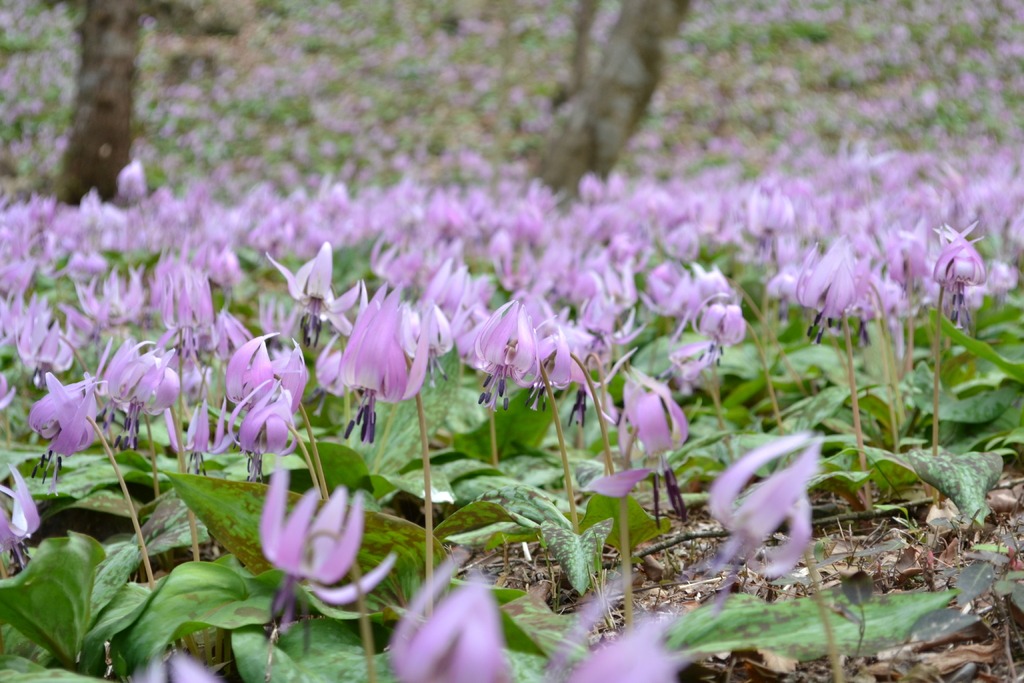 北斜面に位置する可児川下流域自然公園にはカタクリの群生地が広がっています。
