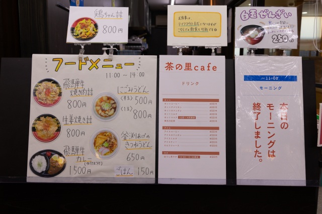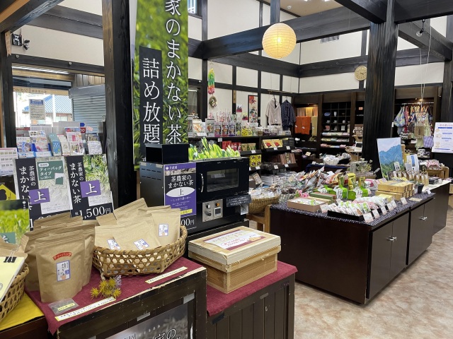 イートインスペースでは、飛騨牛の焼肉丼や東白川の郷土料理「にごみ」をうどんにアレンジした「にごみうどん」が人気。東白川村でつちのこの目撃情報が多いことから誕生した「つちのこ焼き」は、粒あんやカスタードといった定番味と、チョコなど月替わりのものがあります。また、 春から夏にかけて販売される「白川茶かき氷」や、冬季以外販売する「緑茶ソフトクリーム」など、お茶を使ったスイーツが充実し、本格的な味が手軽に味わえると好評です。