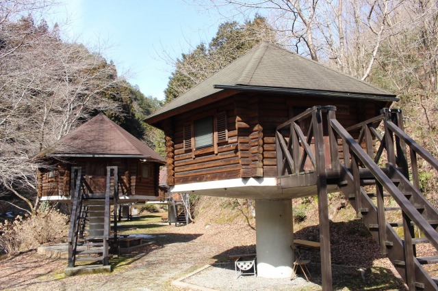特産品の「きのこ」をモチーフにした可愛らしいログハウスが目印です。