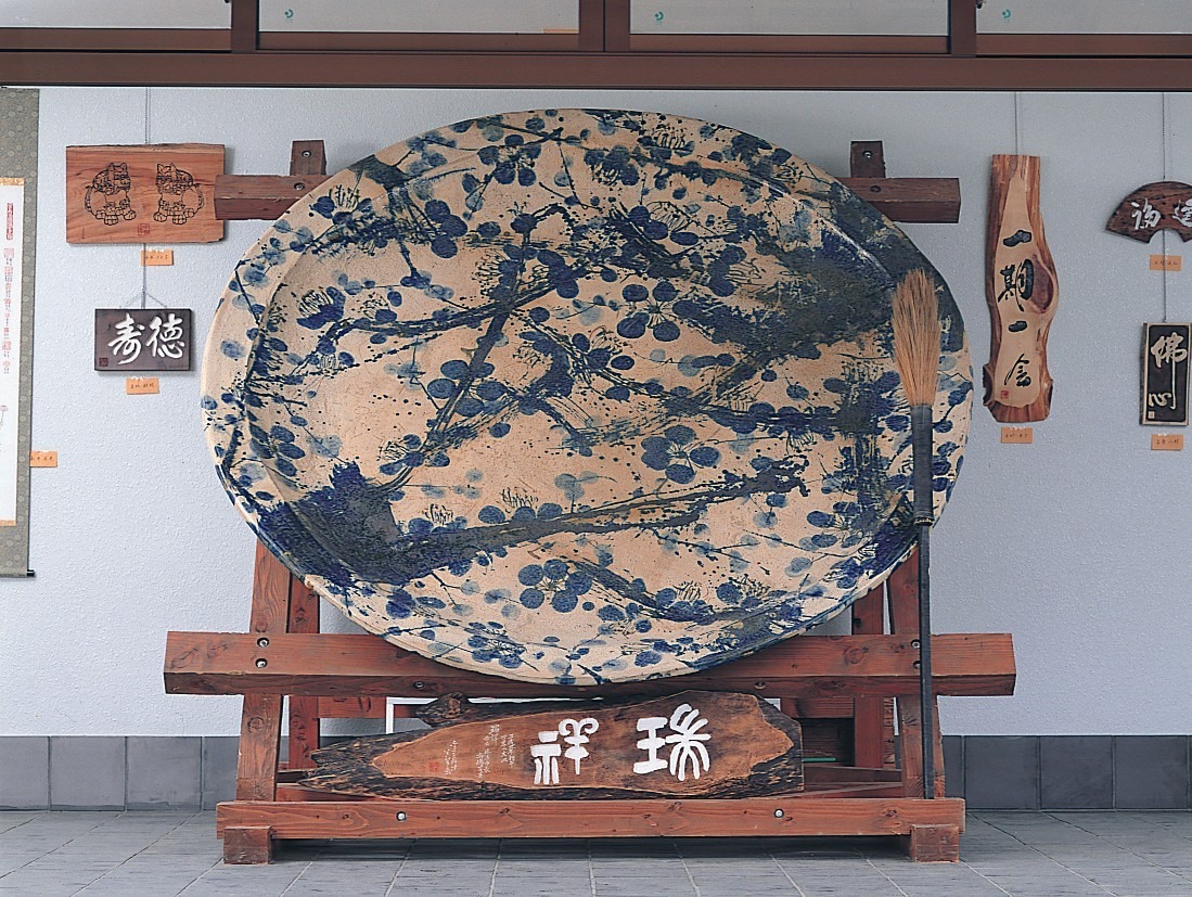 ※大皿がある「瑞祥記念館」の入口の鍵は稲荷温泉で貸し出しています。