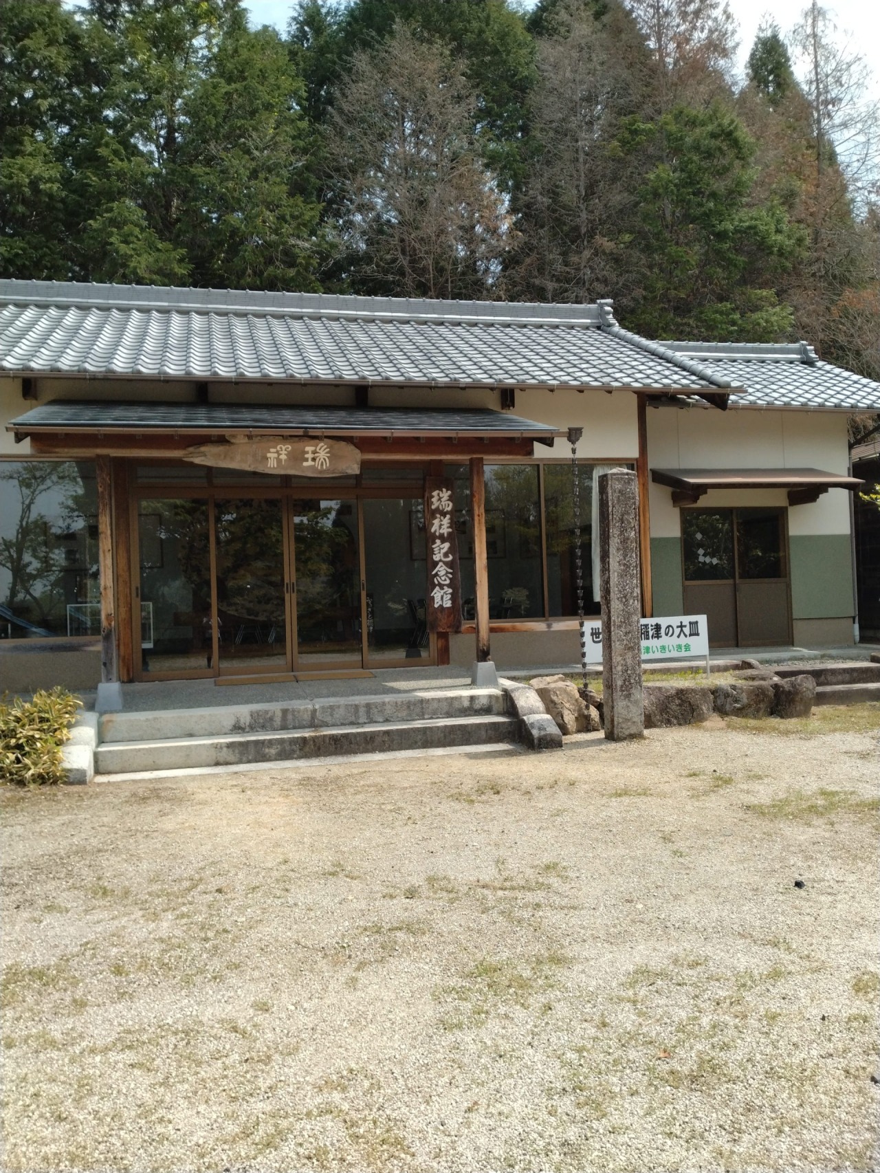 - 大皿がある「瑞祥記念館」の入口の鍵は稲荷温泉(0572-68-3214)まで
