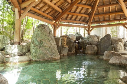 庭園露天風呂は、檜と岩の趣旨の異なる2つの露天からなり、どちらも四季折々の自然を肌で感じ感じられる情緒あふれる空間です。