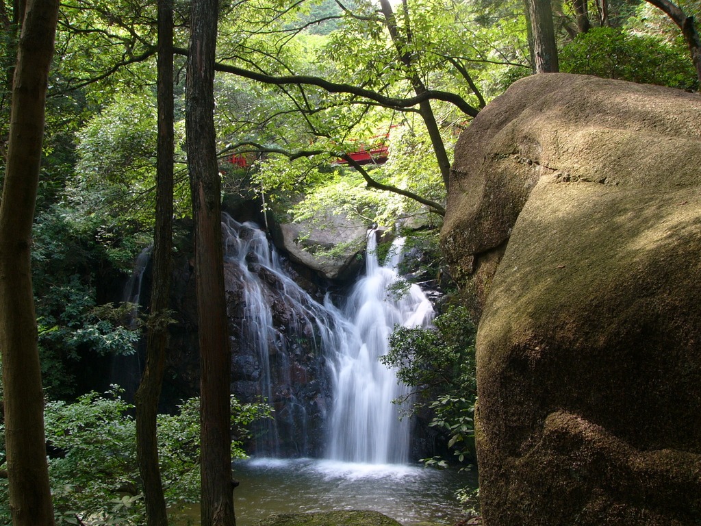 緑深い山の中で水しぶきを上げる姿は、その昔雄竜と雌竜が互いを慕って呼び合ったという伝説にふさわしい神秘的な風情があります。