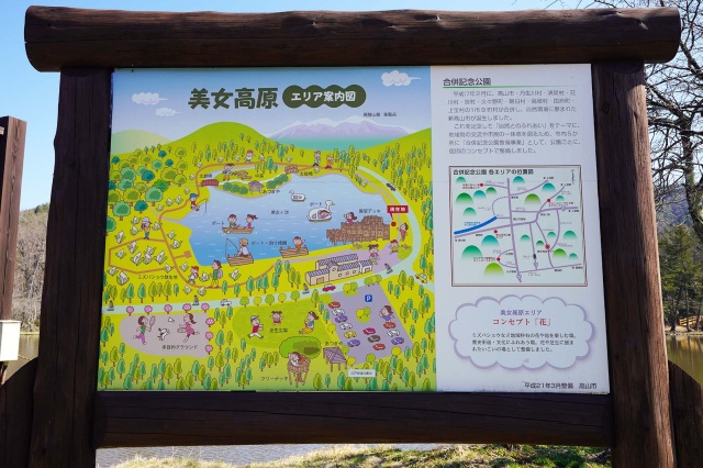 エメラルドグリーンの美女ヶ池では、スワンボートも楽しめ、コイやフナなどの釣りも楽しむことも出来ます。池の外周には散策路が設けてあり、4月中旬から下旬頃にかけて1万株の可憐なミズバショウがお出迎え。アスレチック型の展望台は子供にも大人気です。