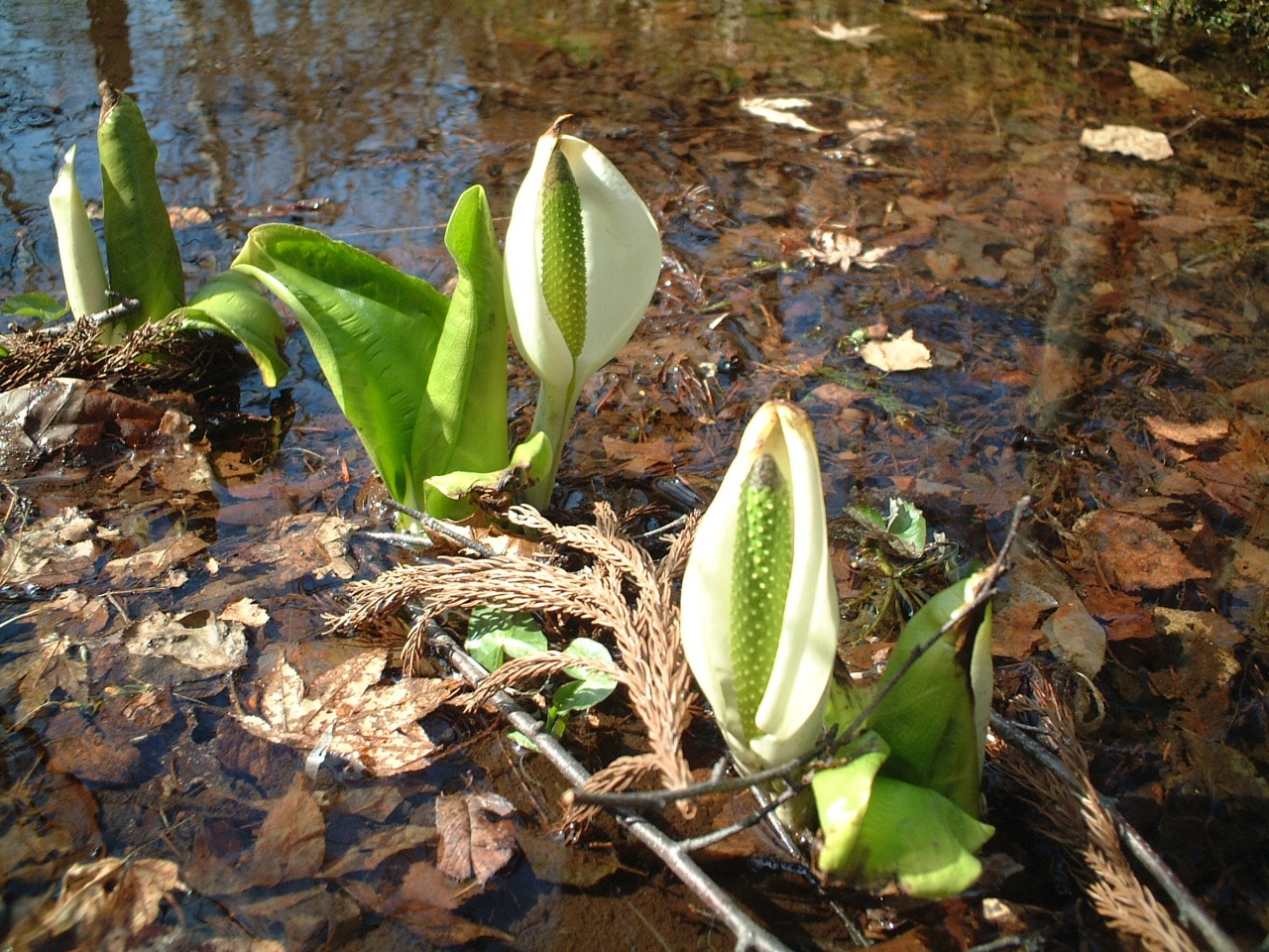 池の外周には散策路が設けてあり、4月中旬から5月上旬頃にかけて可憐なミズバショウが花を咲かせます。