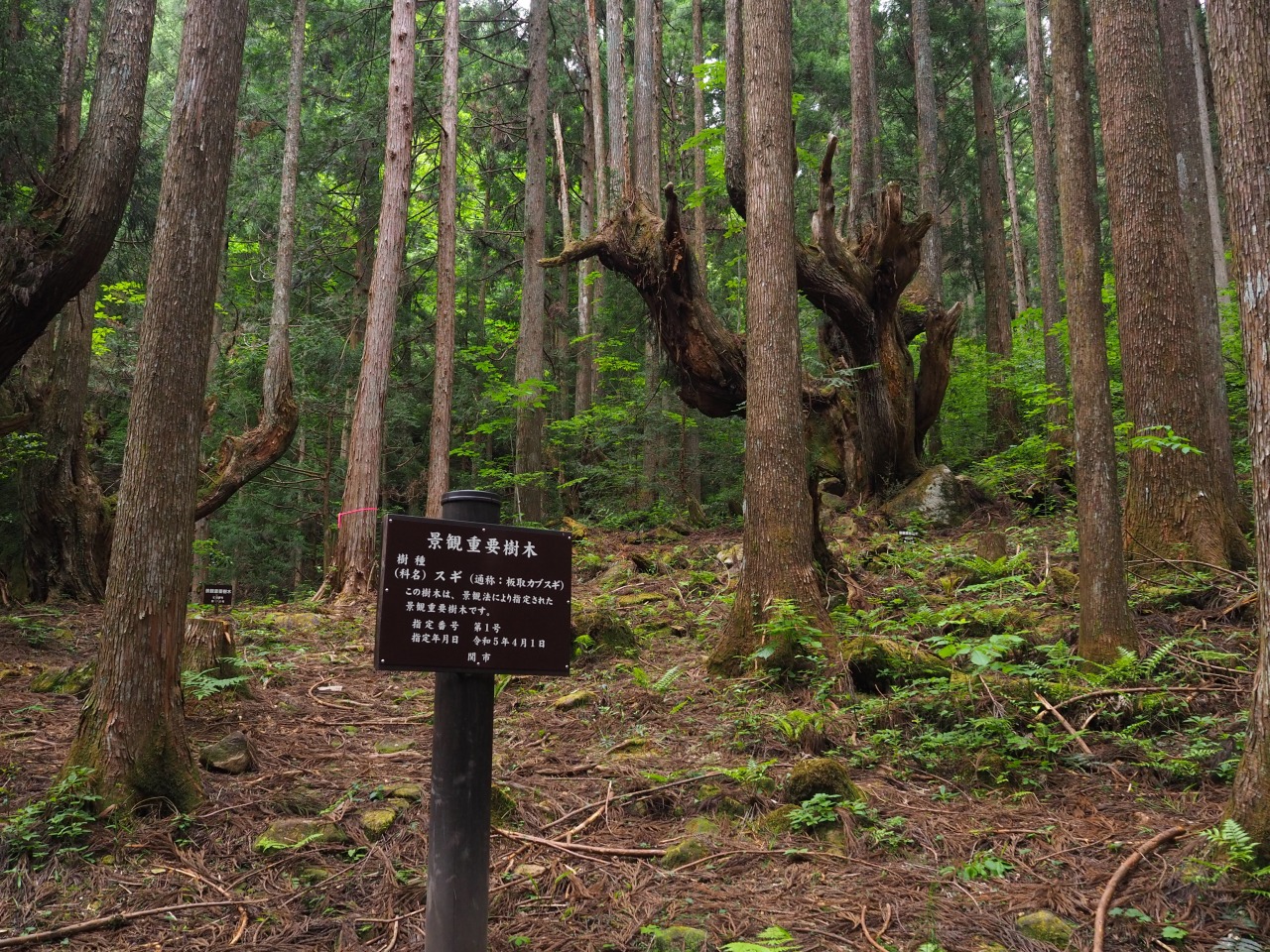 登山口へと向かう道中に広がるのが、推定樹齢400〜500年といわれる「株杉の森」。