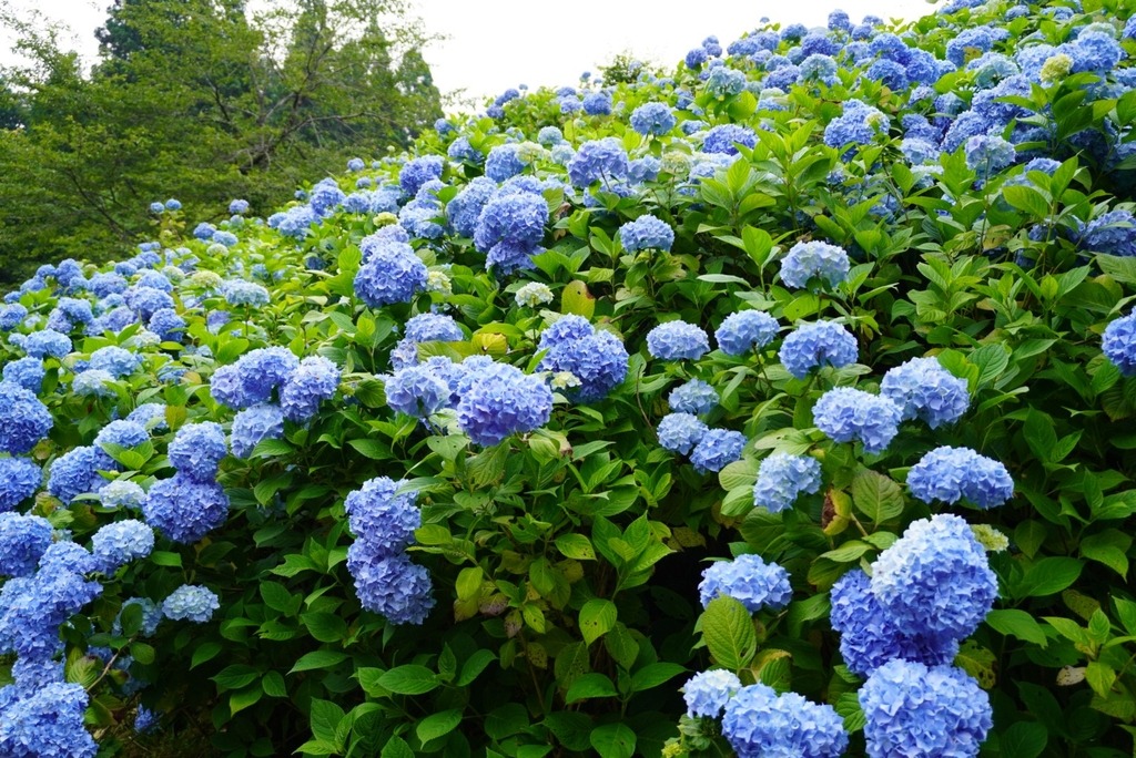 毎年6月には「あじさい園」も見頃を迎え、色とりどりのあじさいが散策路を彩ります。