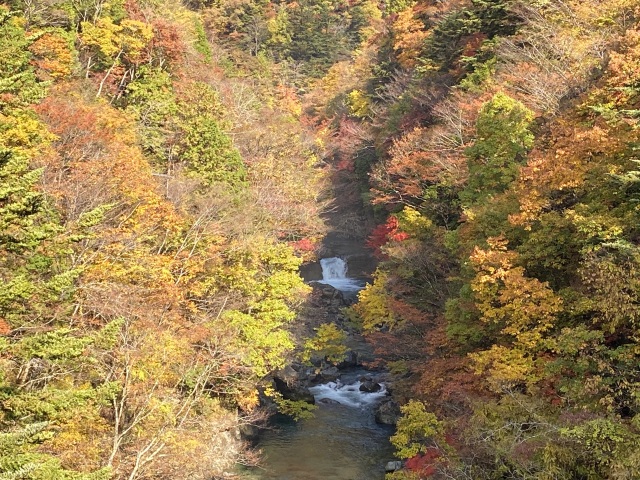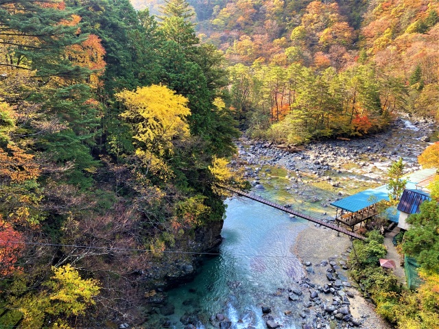 紅葉おすすめスポットは、「攻橋」・「本谷橋」から見た上流・下流又は、「不動公園」駐車場と遊歩道。