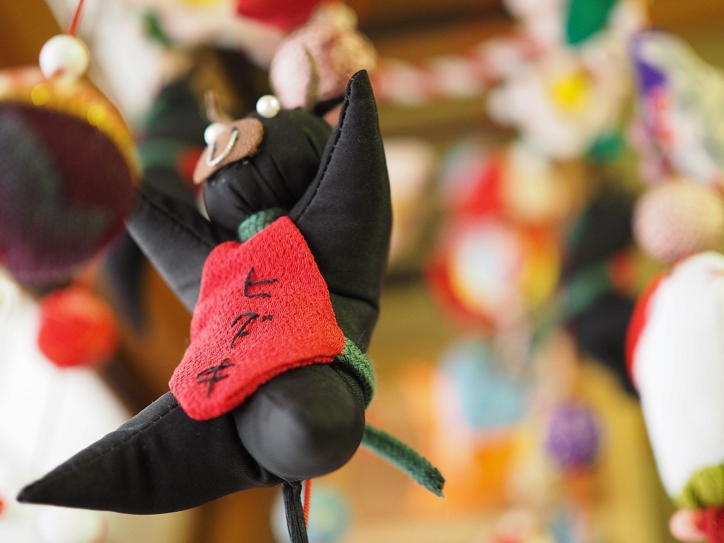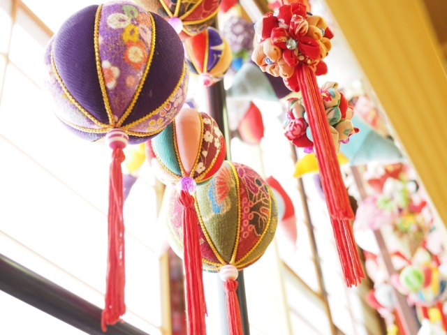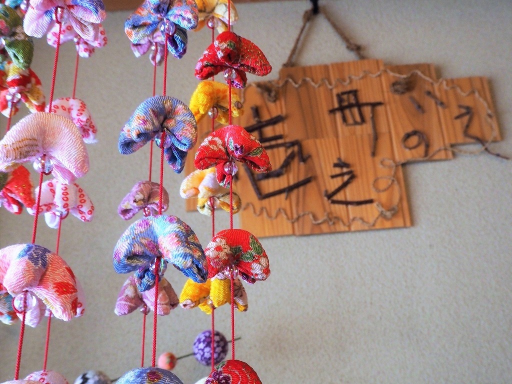 地元の人々の手作りで、飛騨市の市花でもあるミズバショウや飛騨牛も作られ、飛騨らしいつるし飾りとなります。