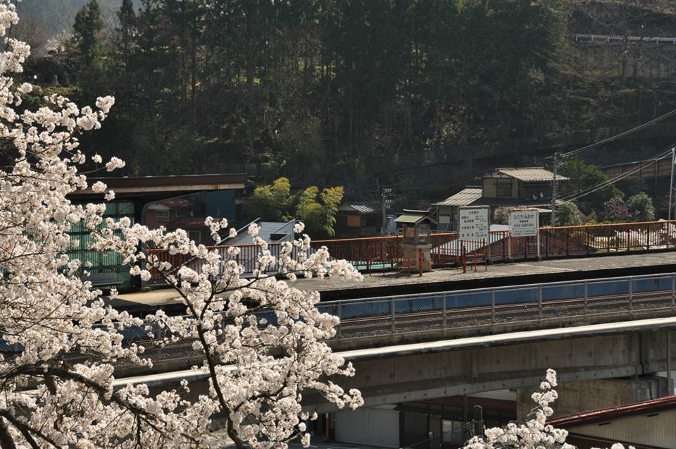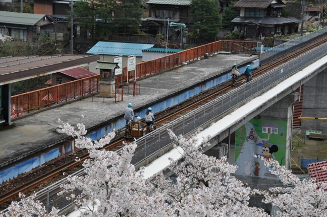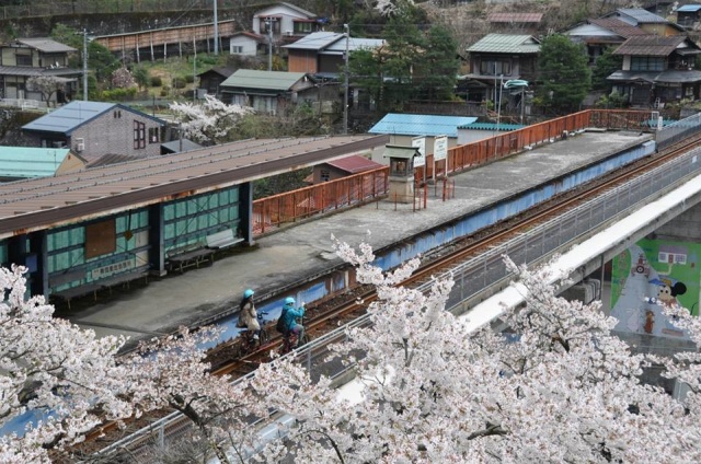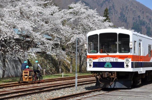 春先には、線路の沿線にある桜を楽しむことができます。中には鉄道高架橋の上を走る自転車からしか眺められないものも。