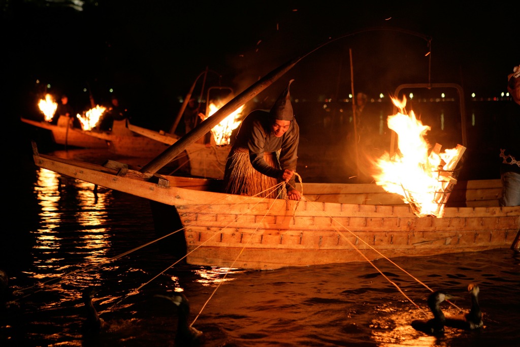1300年の歴史を誇る歴史絵巻木曽川うかいは、夜空に浮かぶ犬山城を背景に篝火をたく鵜舟とともに木曽川を下り、鵜匠の巧みな綱さばきと鵜の妙技を間近で見ることができます。