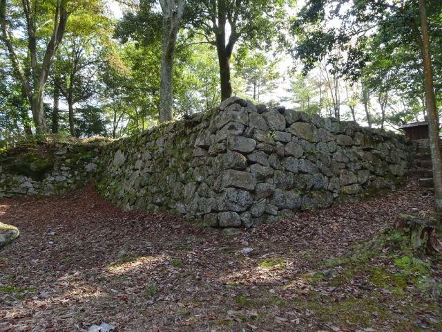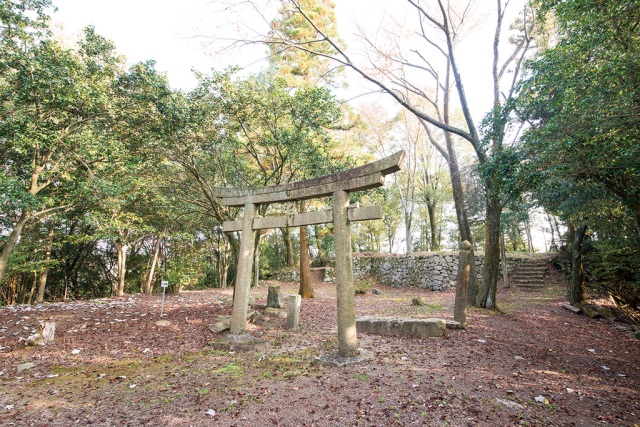 城は山頂を中心に約200メートル四方の範囲に、曲輪、石垣、土塁などの遺構が残されています。