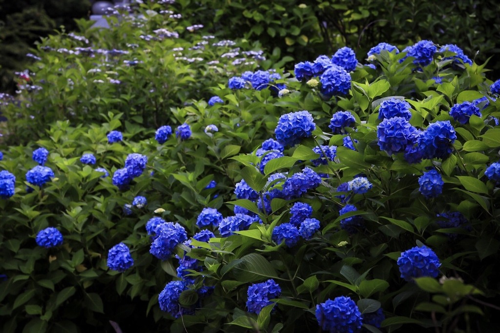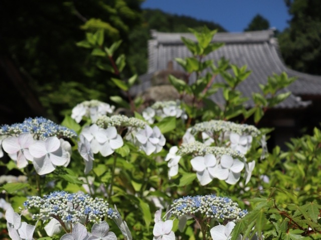 あじさいの隠れおすすめスポットはお堂の横、そして、裏になります。影になっているところに咲くあじさいは色の付き方が違い、とてもきれいな色を出します。