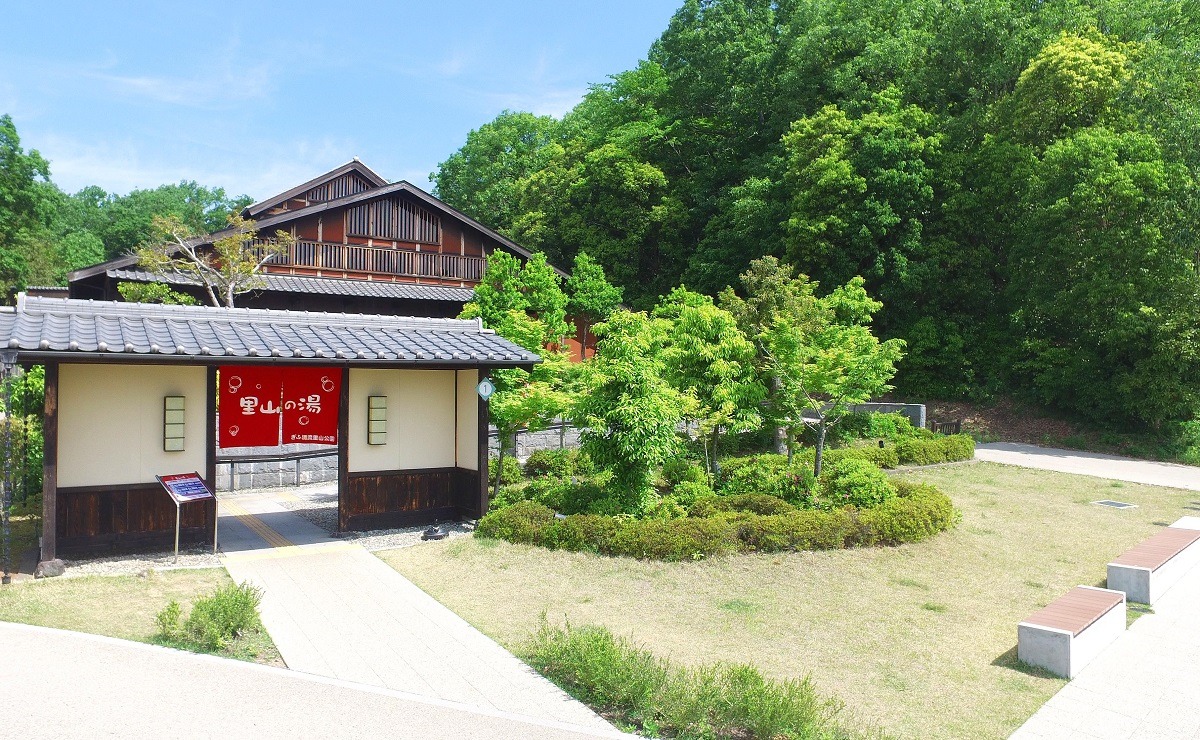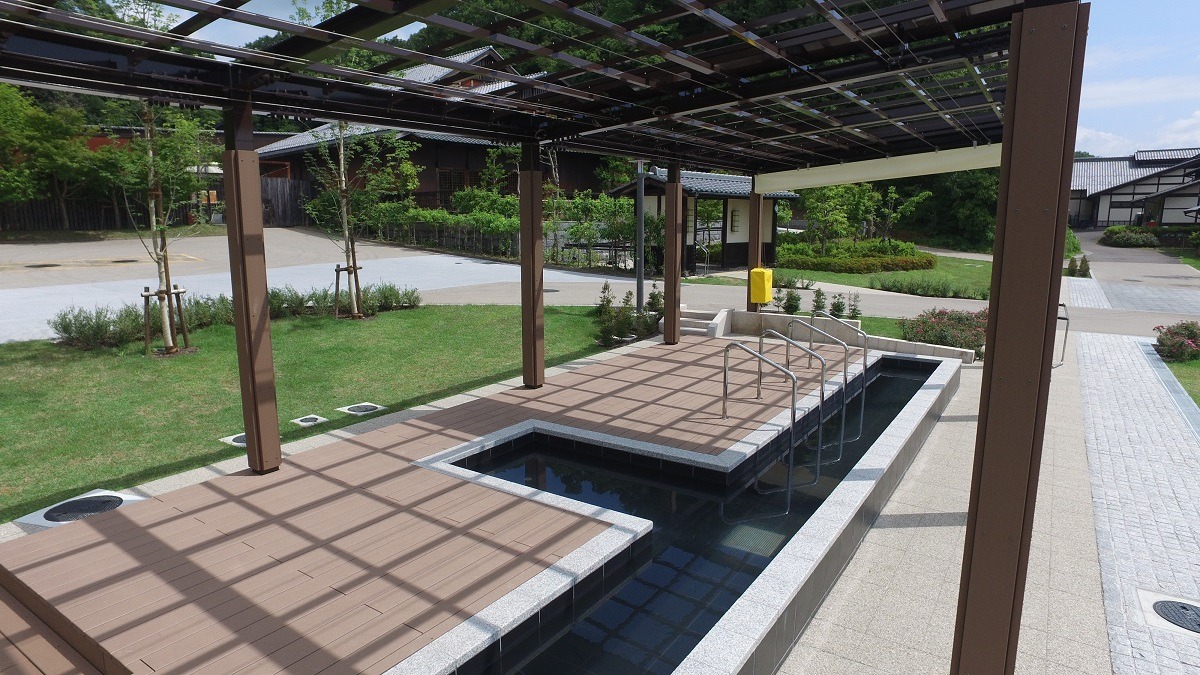 道の駅入り口付近にある「里山の湯」は、7種類のお風呂とサウナがある温浴施設。浴室にある富士山のタイル画など、まるで昭和の銭湯のよう。開放感たっぷりの露天風呂からは里山の景色を眺めることができます。入口にある足湯は、誰でも無料で利用可能です。
