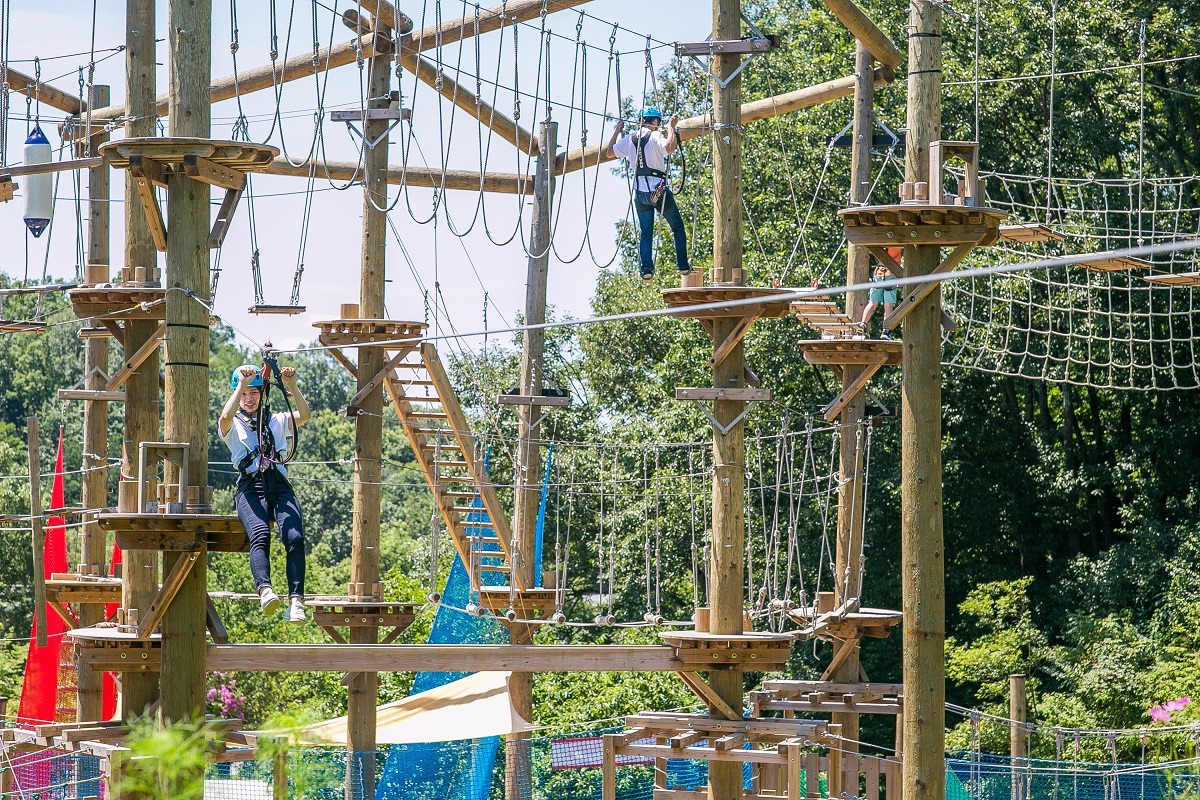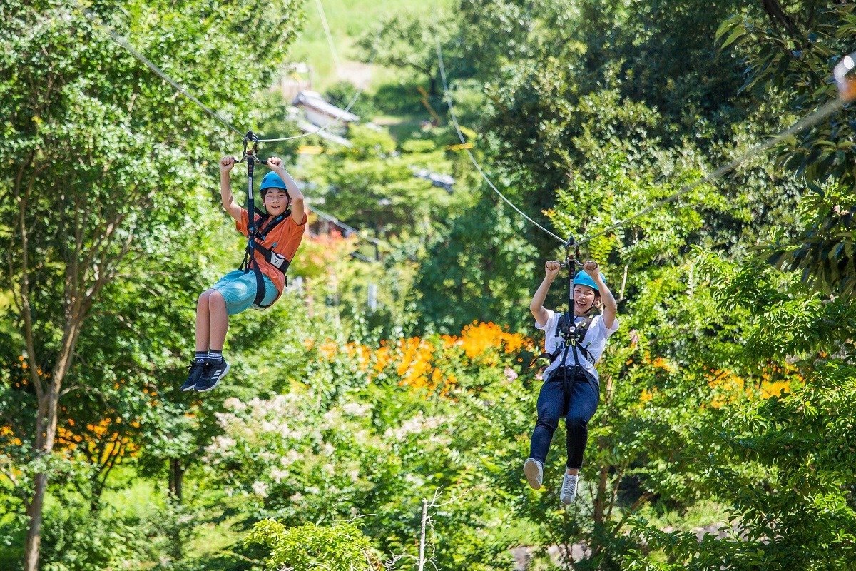 隣接する「ぎふ清流里山公園」では、自然散策からジップラインなどのアクティビティ、ショッピング、食事、お風呂まで、さまざまな過ごし方ができます。8か所あるイートインスペースでモーニングからランチ、スイーツまでさまざまなメニューを楽しめるのが魅力です。