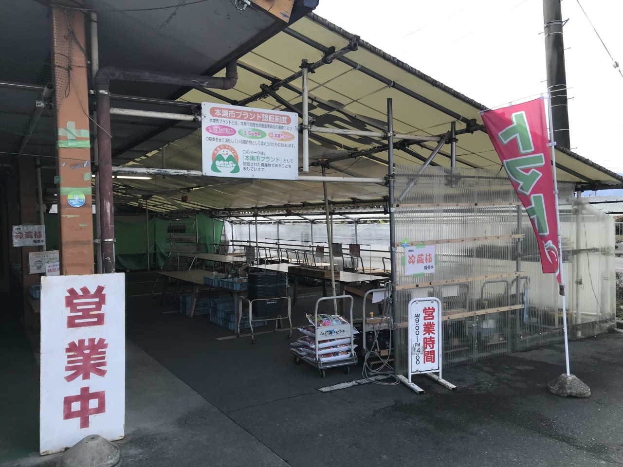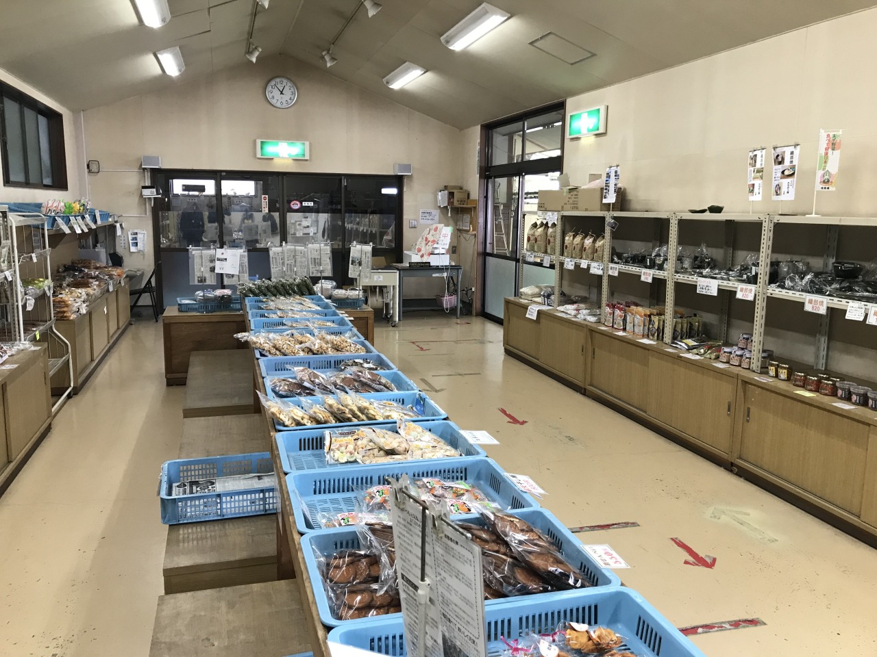 ふれあいセンターで産直野菜を販売。柿のほか、地元生産者が作るさまざまな青果が並びます。