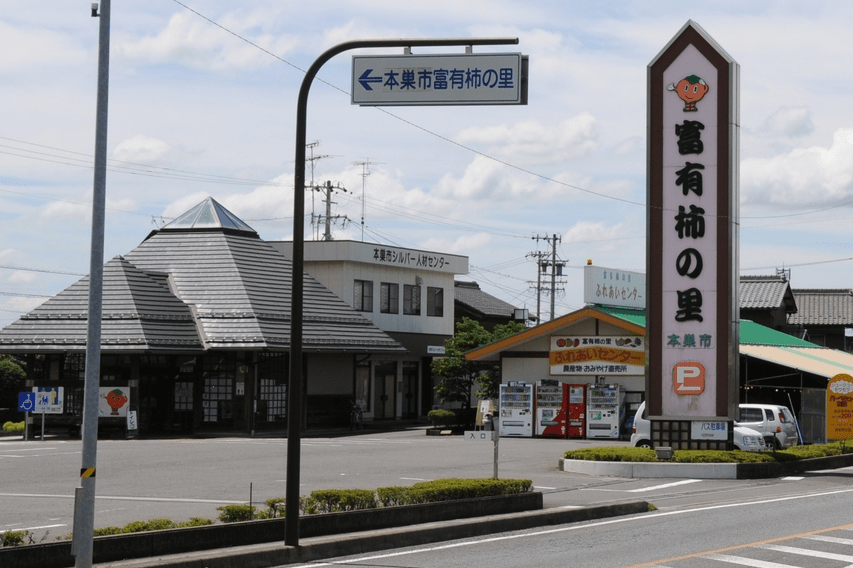 「富有柿の里」内にある道の駅。秋の柿シーズンには、富有柿をはじめとする特産の柿を買い求めるお客さんでいっぱいに。柿アイスや柿ジャム、柿羊羹など、柿を使った加工品も多く取り扱い、柿好きにはたまりません。