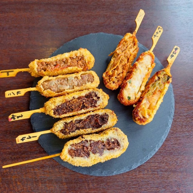 土日祝日のみ営業している売店では、「ジビエコロッケ」が人気。「鹿の煮込み串カツ」はトマト、カレー、味噌などさまざまな味があり、その場で揚げたてをいただける。