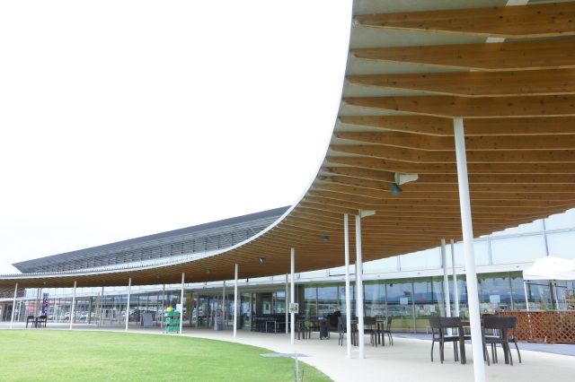 道の駅「パレットピアおおの」は、大野町(ONO)の「O」にちなんだ、円形の屋根付き回廊が特徴的な道の駅。