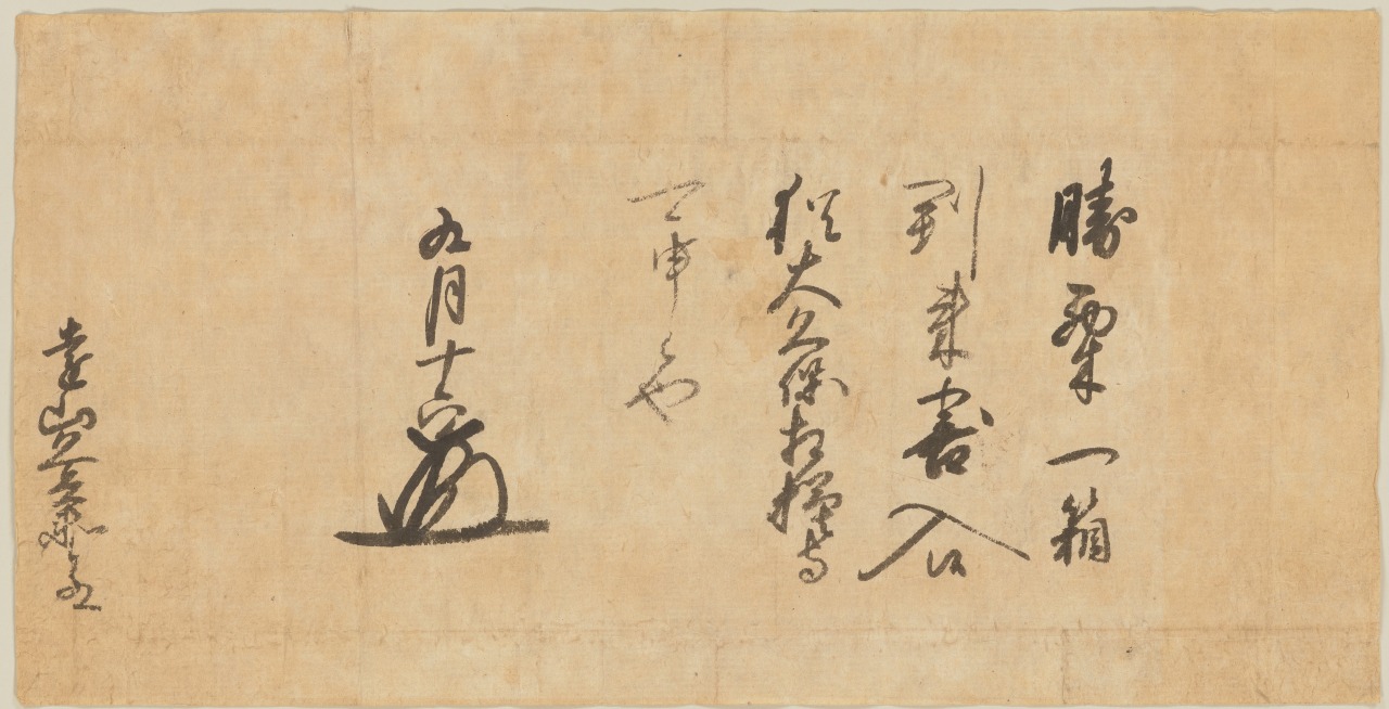 勝栗とは栗を干して皮と渋皮をむいたもので、「勝ち」に通じる縁起もの。正確にはどこで生産された栗なのかは分かりませんが、奪還したばかりの土地で取れた栗を早速献上したものとも考えられます。