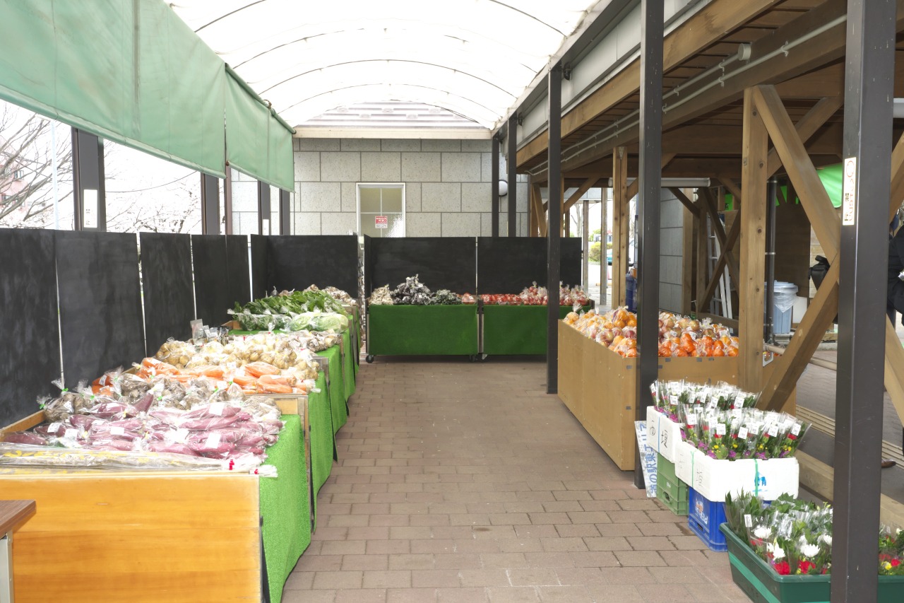 屋外販売所では、地産地消をテーマに、地元農家が生産する新鮮な農産品を安価で即売しています。