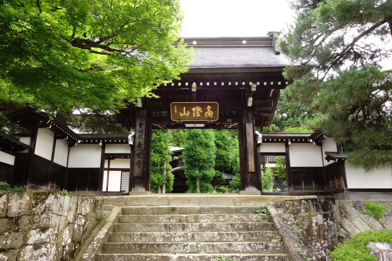 1609年、初代高山城主であった金森長近(かなもりながちか)の菩提寺として、二代目金森可重(かなもりありしげ)が建立したもの。長近の法号にちなんで素玄寺となりました。金森家ゆかりの寺として知られ、長近が用いていた軍扇や采配等のほか、肖像画を所蔵しています。敷地内に飛騨郡代の大原彦四郎*の墓や、金森家供養塔*があります。