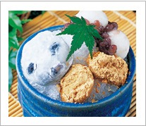 - 豆大福氷 660円(税込)特製ぜんざい 715円(税込)お抹茶と大福餅 605円(税込)