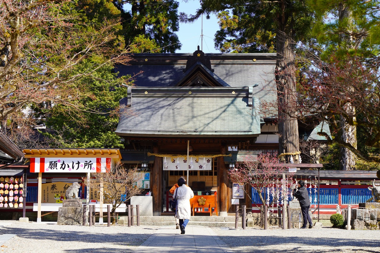 菅原道真公の三男兼茂公が建立した飛騨天満宮。亡き父を慕って自ら木像を彫り祠に祀ったのを始まりとします。一族の無実が認められ兼重公が本官に復帰の折り、飛騨の里人にいつまでも祭祀を継続するよう懇請された923年を創建とし、2023年には創建1100年を迎え奉祝祭が盛大に執り行われました。祭神は学問の神様 菅原道真公、敷地内には約50本の梅が植樹され、毎年3月下旬ころ、馥郁とした香りが境内に漂います。