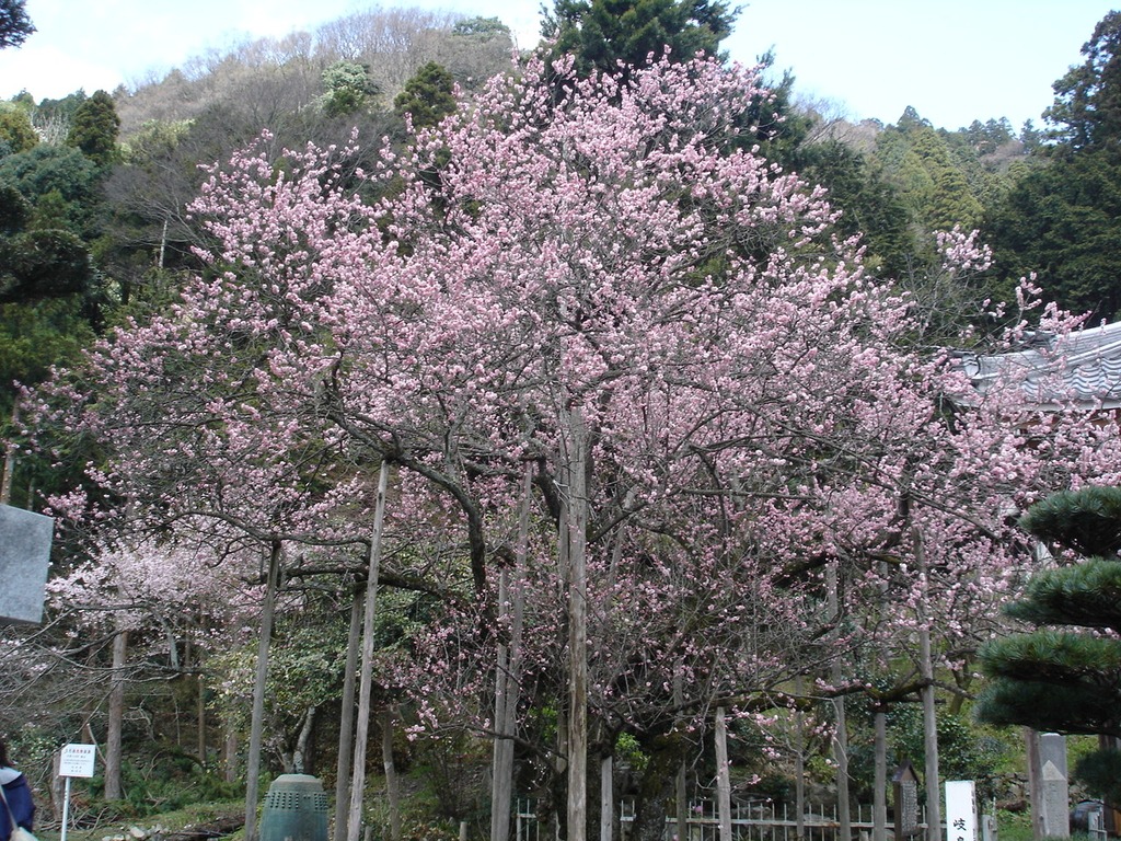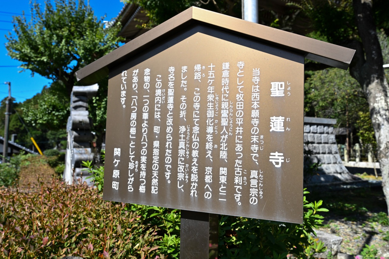 関ケ原町今須地区の平井集落に所在する「八幡山 聖蓮寺(しょうれんじ)」には、町・県指定天然記念物の「八房梅(やつふさうめ)」と呼ばれる梅の木があります。