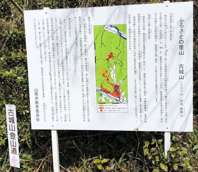 山麓の古城山登山口より古城山を登るコース大桑城の遺構を見ながら山頂を目指します。