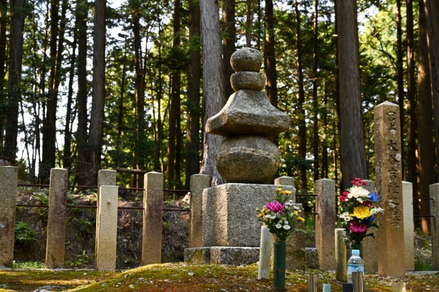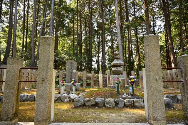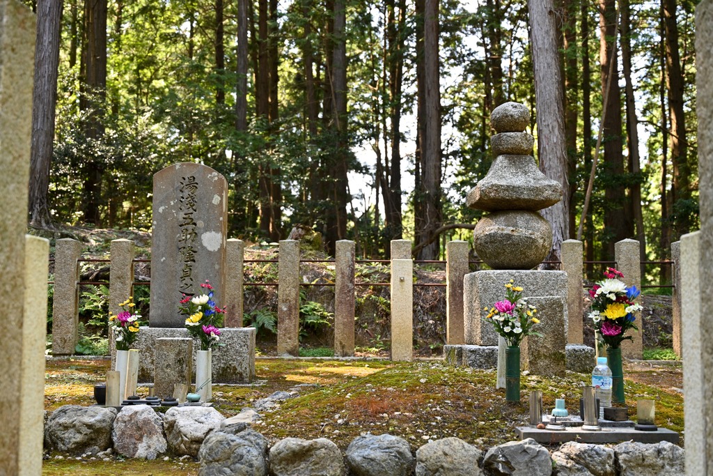 「大谷吉継の墓」は、平塚為広の碑より山道を15分ほど登った場所にあります。その墓はひっそりと吉継の側近「湯淺五助の墓」と一緒に建っています。