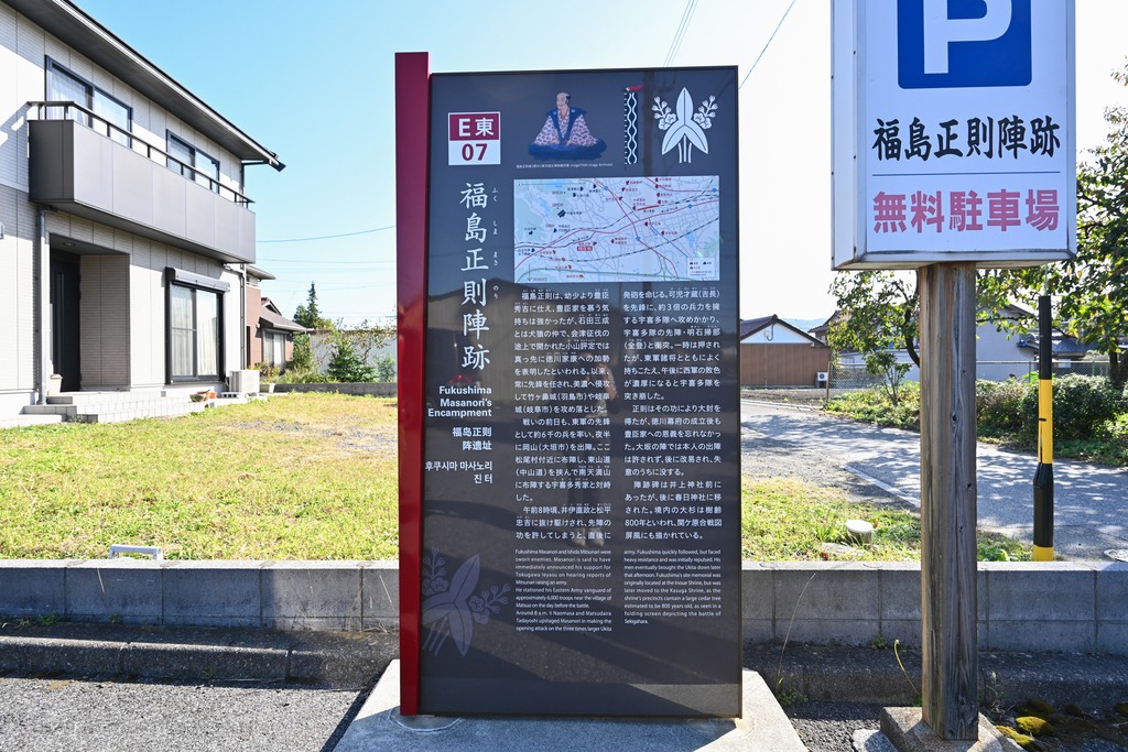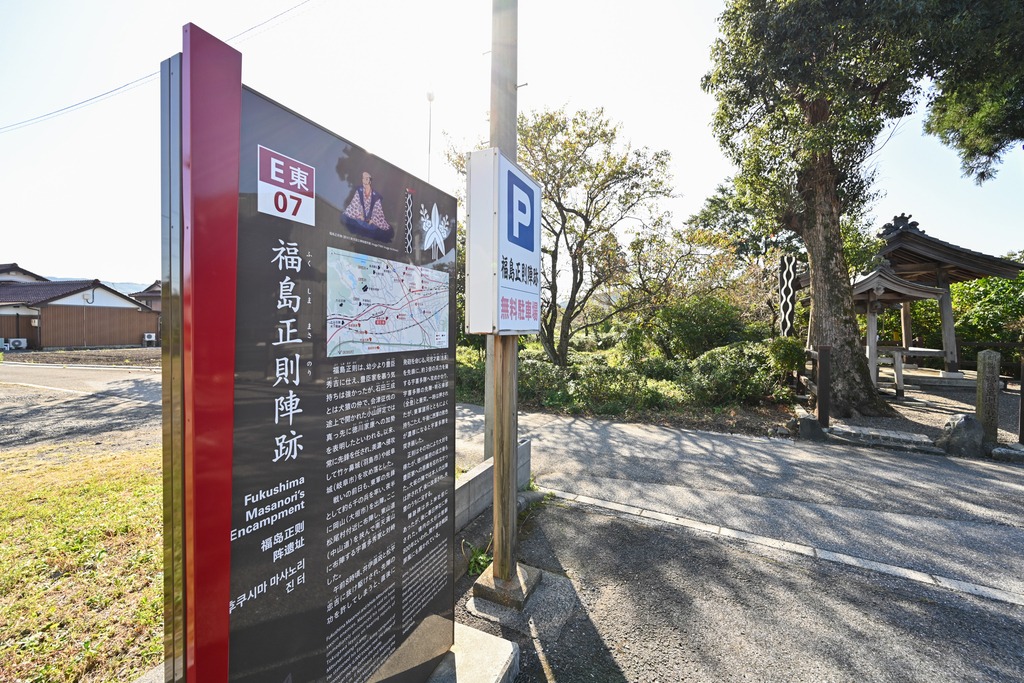 福島正則陣跡(ふくしままさのりじんあと) 開戦すぐ、宇喜多隊を衝く福島隊! 福島正則は秀吉子飼いの大名でありながら 、石田三成と対立して東軍へ加担し、関ケ原合戦の開戦後、宇喜多隊に襲いかかり死闘を繰り広げました。現在、陣跡が残る春日神社境内には、関ケ原合戦屏風にも描かれた樹齢800年の「月見の宮・大杉」が、どっしりとそびえ立っています。また、関ケ原合戦時に福島隊の戦闘隊長は、御嵩町ゆかりの武将である可児才蔵が務めています。【月見の宮・大杉】目通り約5.8m、高さ約25m、樹齢800年余りと推定されており、町の天然記念物に指定されています。 エリア 西濃 関ケ原町 カテゴリー 歴史を知る 戦国・城郭 Loading... フォトツアーを見る 基本情報 住所 岐阜県不破郡関ケ原町大字松尾111 アクセス 国道21号線松尾交差点南に徒歩5分 春日神社付近 ウェブサイト 関ケ原観光情報ホームページ(福島正則陣跡)